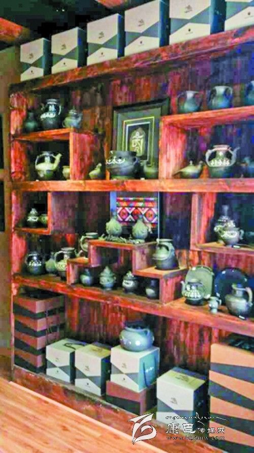 專賣店位于康定情歌廣場(chǎng)右側(cè)。店面古樸簡(jiǎn)潔,店鋪內(nèi),沒有華麗的裝飾,沒有鮮亮的色彩,一件件或黑色、或土黃色的土陶產(chǎn)品靜靜地?cái)[放在木質(zhì)陳列架上。產(chǎn)品有傳統(tǒng)的器形,如雙耳罐、香爐、茶壺等,又有新研發(fā)出的器形,如茶具、餐具、筆架等等。產(chǎn)品在將傳統(tǒng)工藝與現(xiàn)代工藝巧妙結(jié)合的基礎(chǔ)上,還融入了藏族傳統(tǒng)文化,民俗文化、宗教文化、吉祥文化等元素,以其拙樸典雅的造型向人們?cè)V說著“阿西土陶”悠久的文化內(nèi)涵與歷史淵源。