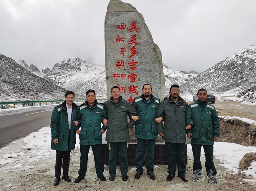 其美多吉與同事們在“郵路”上合影。