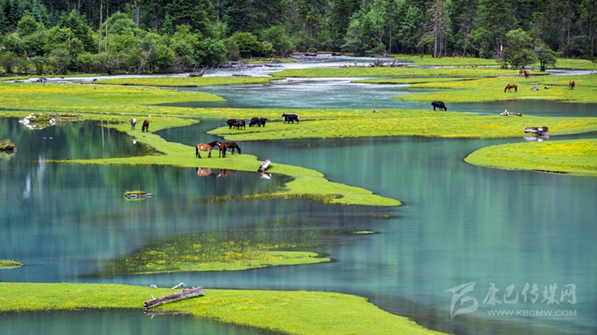 在甘孜州黃河流域第一鄉(xiāng)——長(zhǎng)沙貢馬鄉(xiāng),查曲河支流哥得爾給曲流域綠草如茵、野花盛開。