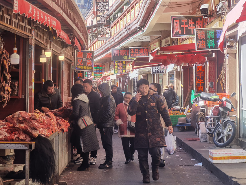 康定市高師放心鮮肉鋪的高老板這幾天尤為忙碌,每天早上四五點(diǎn)就要起床去備貨,六點(diǎn)過趕到市場(chǎng)開門營(yíng)業(yè),一直要忙到下午六七點(diǎn)。他告訴記者,臨近年關(guān),市場(chǎng)逐漸熱鬧起來,人流量明顯增多。特別是豬肉市場(chǎng),不少市民大量購(gòu)買鮮豬肉制作臘肉香腸,為過年做準(zhǔn)備。