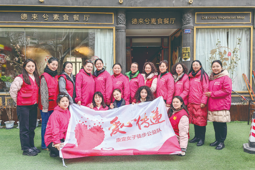 自2019年起,團(tuán)隊還堅持每年舉行“致敬環(huán)衛(wèi)工”免費自助餐活動;3年新冠疫情期間及“9·5”瀘定地震發(fā)生后,團(tuán)隊更是積極響應(yīng)黨委政府亟需志愿者的號召,一抹抹“巾幗紅”賡即沖在一線,購置災(zāi)區(qū)所需用品、悉心照顧受災(zāi)病患,發(fā)揮了公益團(tuán)隊?wèi)?yīng)有職能,康定女子徒步公益隊的名字,愈來愈為人所知、為人稱贊。