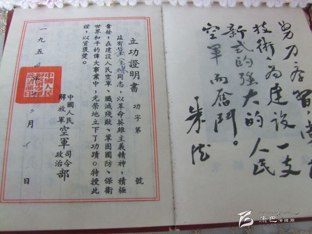 老人名叫肖金棟,今年85歲,瀘定縣德威鄉(xiāng)人,1951年2月參加中國人民解放軍,參加過康定金湯、阿壩黑水殲滅殘敵戰(zhàn)役,先后榮立二等功1次、三等功2次,消滅殘敵后,他來到沈陽第八航空學校歷任修理廠廠長、訓練部主任,1954年8月,加入中國共產黨,1969年10月轉業(yè)回到瀘定。1956年10月28日,毛澤東、朱德、賀龍等在中南海懷仁堂親切接見了空軍學校的積極分子,肖金棟便是其中之一。得知肖金棟老人不平凡的經歷,記者決定采訪他。