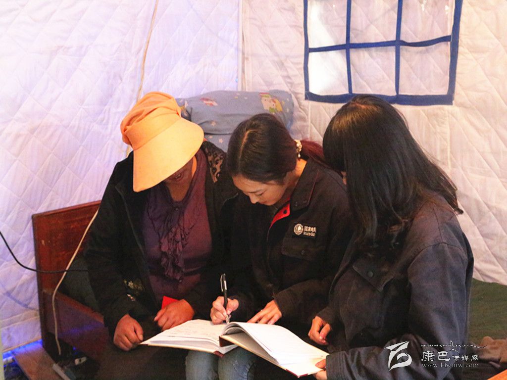 走進(jìn)救災(zāi)帳篷,澤仁汪清的姐姐古讓看到丹珍拉姆他們的到來,拿出繳費(fèi)冊(cè)如數(shù)繳了電費(fèi),感激地對(duì)拉姆說:“你們上門服務(wù),讓我們節(jié)約了路費(fèi)和時(shí)間,真是太謝謝你們了!”