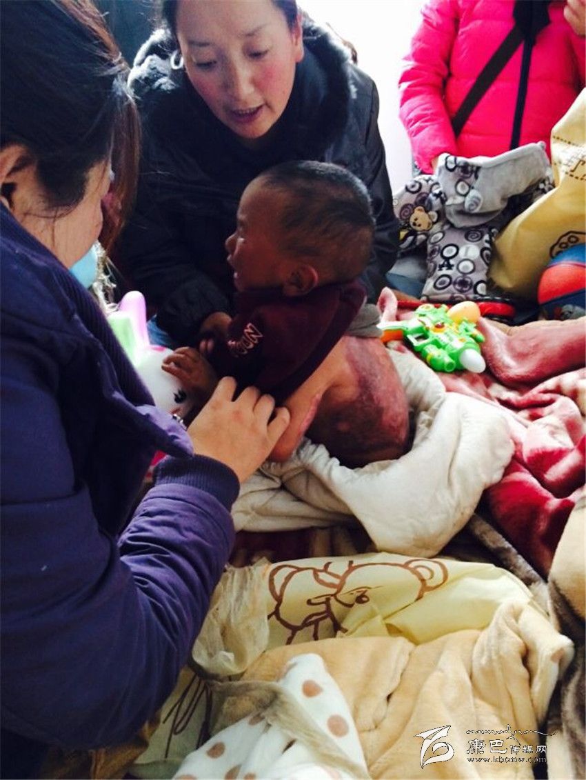 2015年4月25日石渠縣青年志愿者服務(wù)隊(duì)普呷看望燙傷男孩,并帶孩子及時(shí)入院治療。