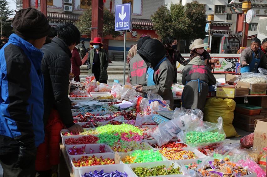 來(lái)自甲斯孔鄉(xiāng)的布珠說(shuō),年貨買(mǎi)得差不多了,這次不準(zhǔn)備買(mǎi)年貨了,“但這集市很有味道,不買(mǎi)東西來(lái)湊湊熱鬧也安逸。”像布珠大哥一樣,很多附近村子的人來(lái)趕集,主要是“湊熱鬧”,這接地氣、有鄉(xiāng)土味、有民族風(fēng)的農(nóng)村集市成了大家的休閑空間。