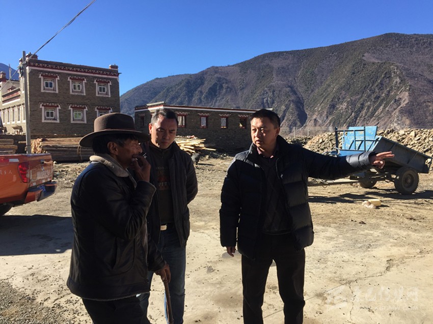 康定市委副書記易西澤仁(右)指導(dǎo)基層維穩(wěn)工作。