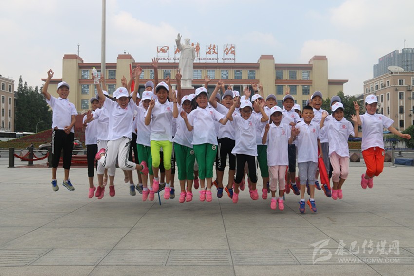 孩子們?cè)诔啥疾┪镳^合影。