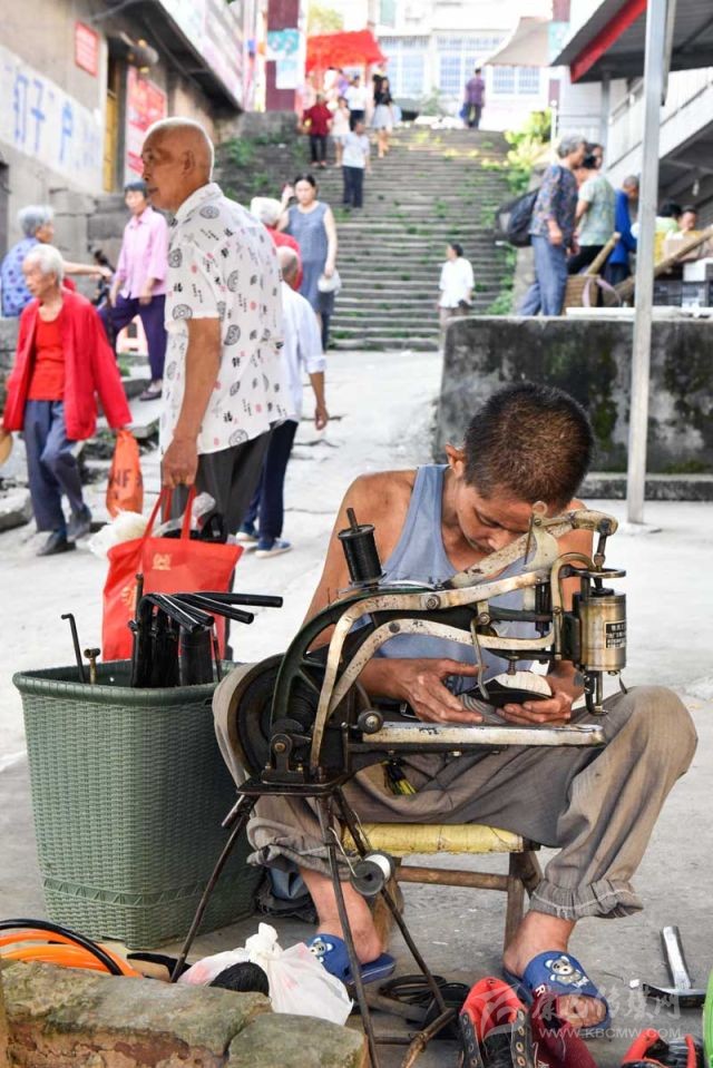 “三娃,今天來得早嘛!”尚未坐定,便有鄉(xiāng)鄰拿著鞋子走過來,“鞋跟脫膠了,修一哈。”