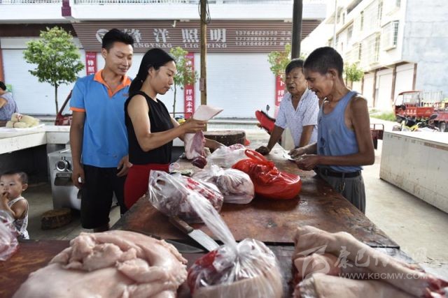 8月15日,南部縣長坪鎮(zhèn)農(nóng)貿(mào)市場,正在買肉的周強善。攝影 張可凡