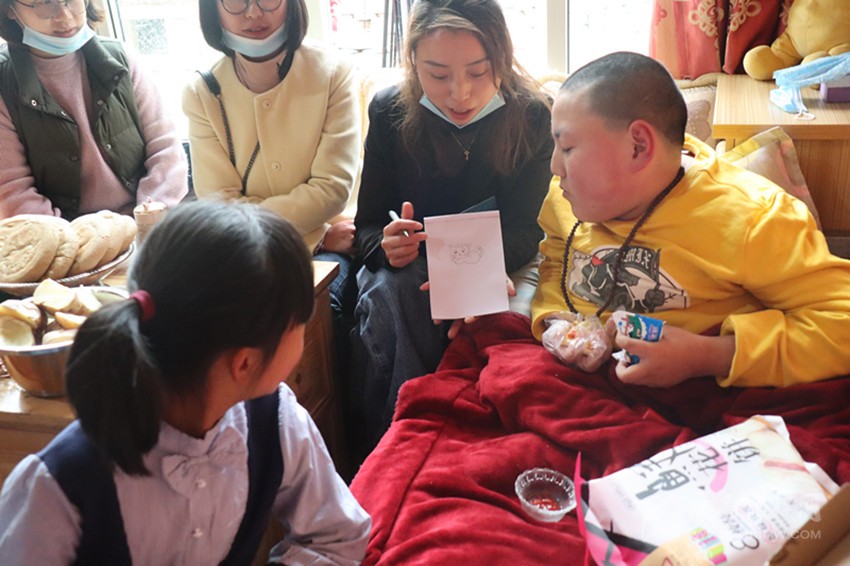 新龍縣甲拉西鄉(xiāng)麥珠村的尼瑪(化名)、達(dá)瓦(化名)兄妹倆,從小就是漸凍癥患者,癱瘓?jiān)诖?,父親不幸意外去世,家庭連遭不幸和身體殘疾并沒(méi)有阻擋他們倆對(duì)知識(shí)的渴盼,他們通過(guò)電視學(xué)會(huì)了普通話,了解外面精彩的世界;城區(qū)二完小的老師們開展的“送教上門”活動(dòng)和社會(huì)各界的援助,圓了他們倆的求學(xué)夢(mèng)。