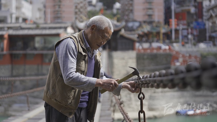 生于1955年的姚先貴,世居瀘定縣瀘橋鎮(zhèn),其家族世代以打鐵為生。他自幼年便跟隨其父學習鍛造鑄鐵技藝,七八歲時就已經熟悉許多技巧,十五歲左右已能鍛造用于修繕瀘定橋的鐵鏈,二十出頭便能通過敲、聽、看檢測瀘定橋鐵索的質量。其后,姚先貴一直負責鐵索質量檢測與維修,在鍛造鐵鏈時擔任“掌鉗”(師傅),先后參與過6次瀘定橋大修。