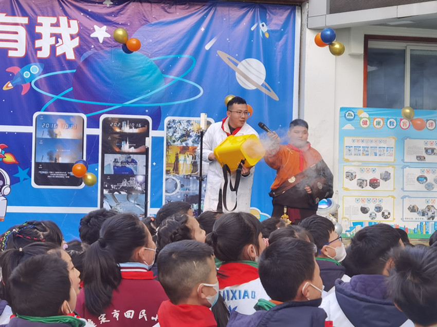 這是回民小學(xué)第三屆校園科技節(jié)活動(dòng)上的精彩一幕,每年的科技節(jié)都是該校全體師生翹首以盼的“重頭戲”。今年的科技節(jié)以“逐夢(mèng)九天,強(qiáng)國(guó)有我”為主題,由康定市教體局、康定市科協(xié)主辦,回民小學(xué)承辦,希望學(xué)生們能夠在科技實(shí)踐、體驗(yàn)和創(chuàng)新中把握未來(lái)。