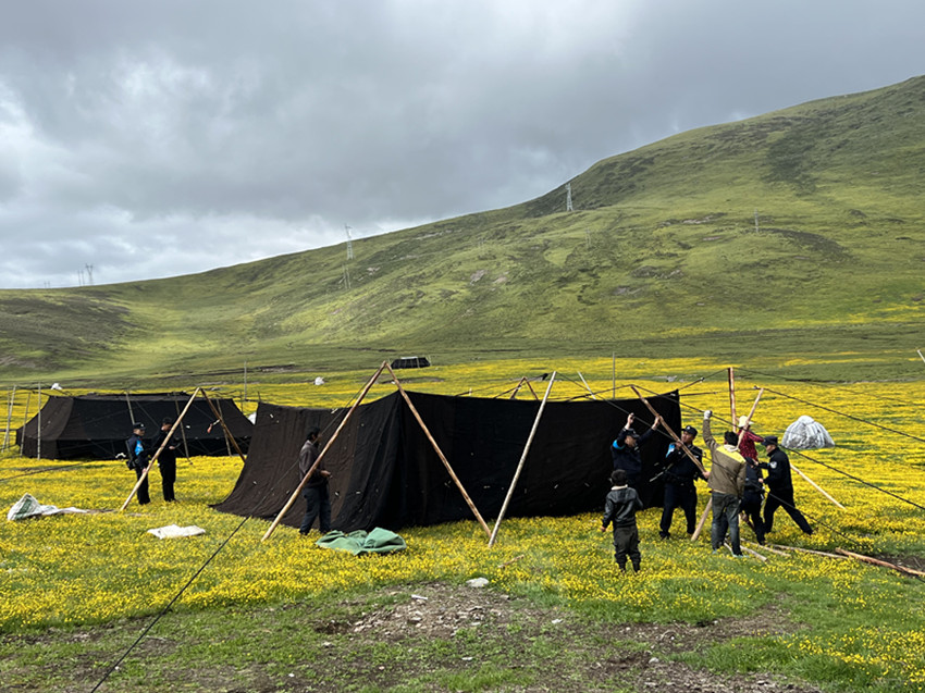 返程途中,高照洪和同事們還遇見安孜鄉(xiāng)門馬一、二村牧民正在冒雨搭建夏季牧場的黑帳篷,隨即下車幫助牧民一同搭建,并向牧民群眾宣講道路交通安全、森林草原防滅火、防汛期防護、嚴防“偷牛盜馬”及保護個人財產(chǎn)等方面的知識。
