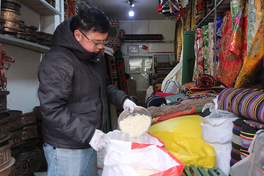 對(duì)于馬建文來說,像尼瑪這樣的“回頭客”還真不少,在與客人們打交道的過程中,獨(dú)在異鄉(xiāng)的他感受到了道孚群眾的溫暖、團(tuán)結(jié)和互助?!耙郧芭純河腥藖淼昀铩畵v亂’,附近的居民得知此事后,主動(dòng)站出來幫助我,告訴大家各民族親如一家,要心手相連、和睦互助?!倍嗄赀^去,馬建文至今仍清晰地記得,店鋪剛開業(yè)時(shí),道孚兒女給予他的暖心幫助。
